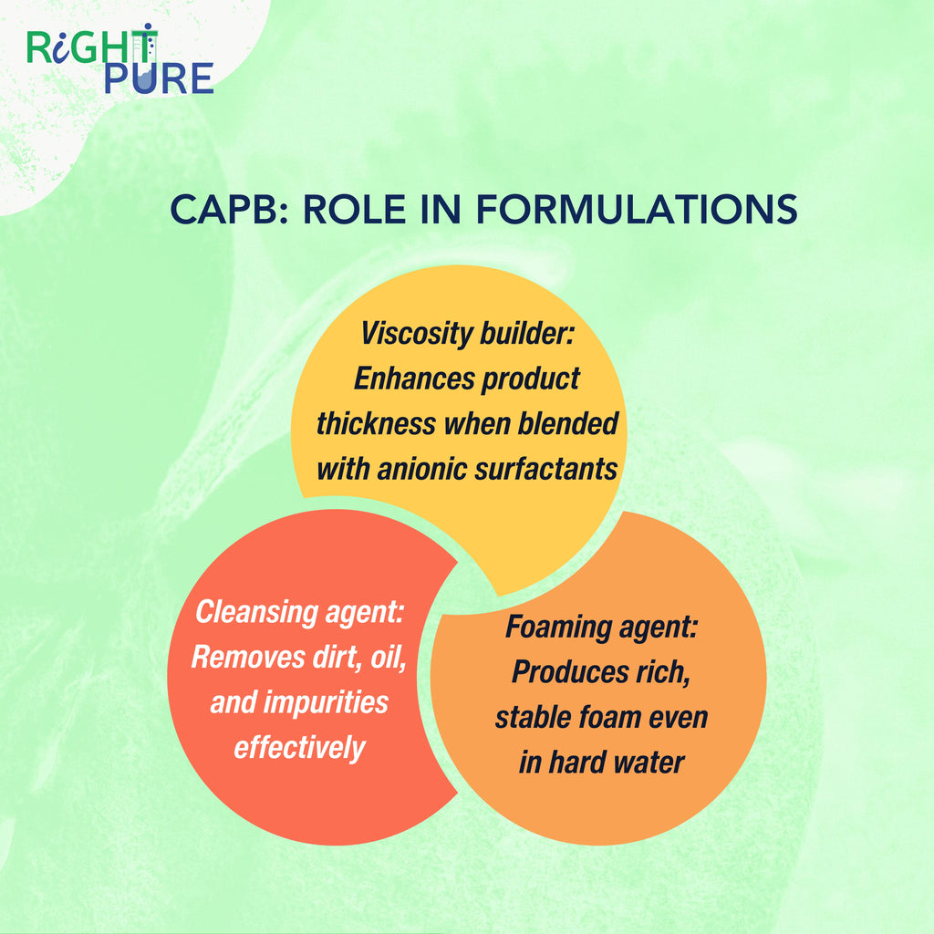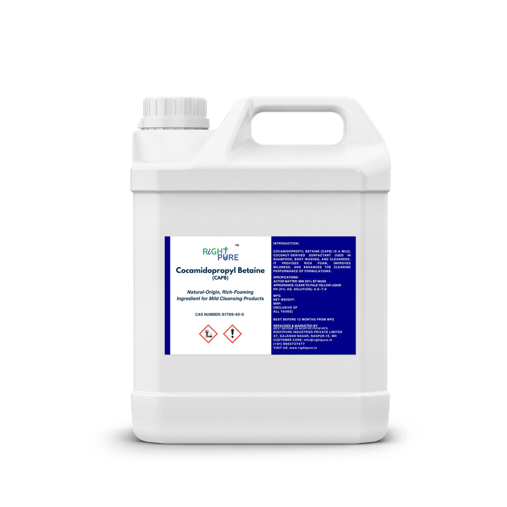 RIGHTPURE® Cocamidopropyl Betaine (CAPB) – a high-quality, coconut-derived, biodegradable surfactant widely used in personal care and home care formulations. Known for its mildness and excellent foaming ability, CAPB enhances the cleansing performance and skin feel of your products while reducing irritation caused by harsh surfactants.
